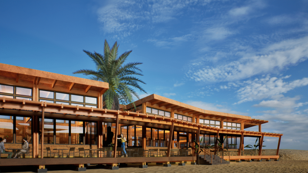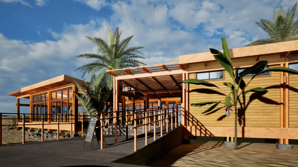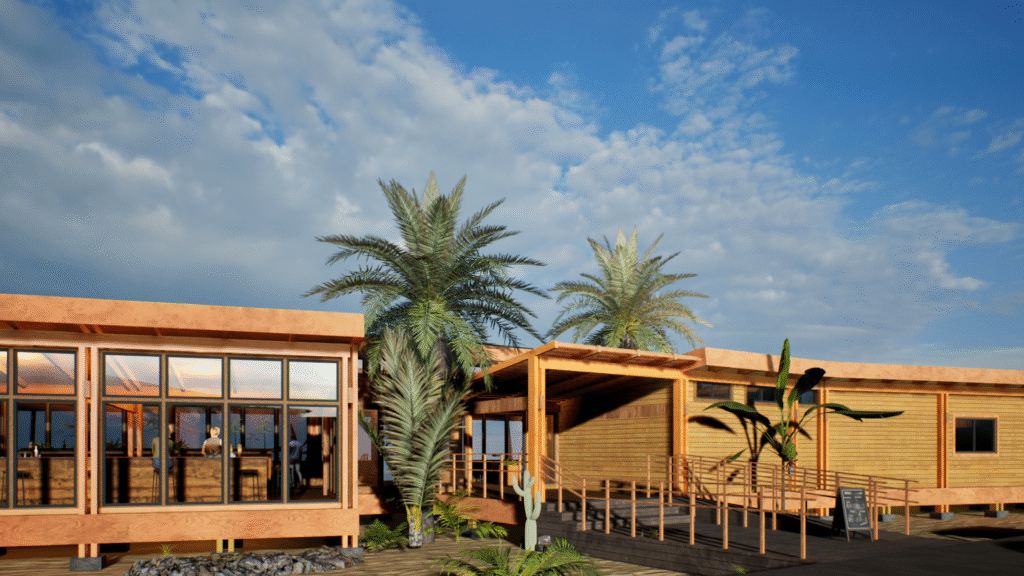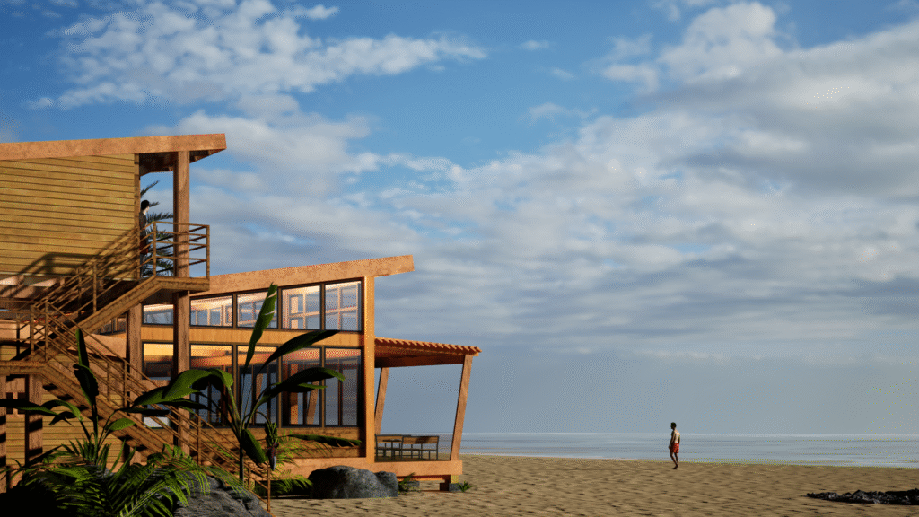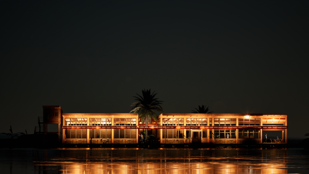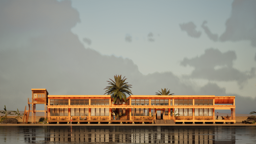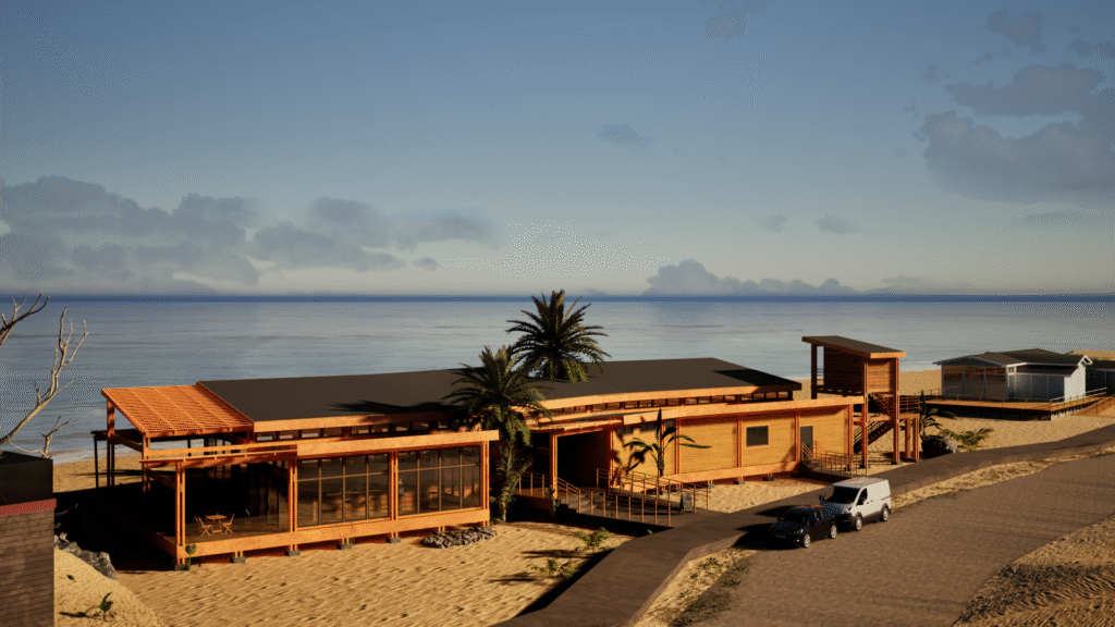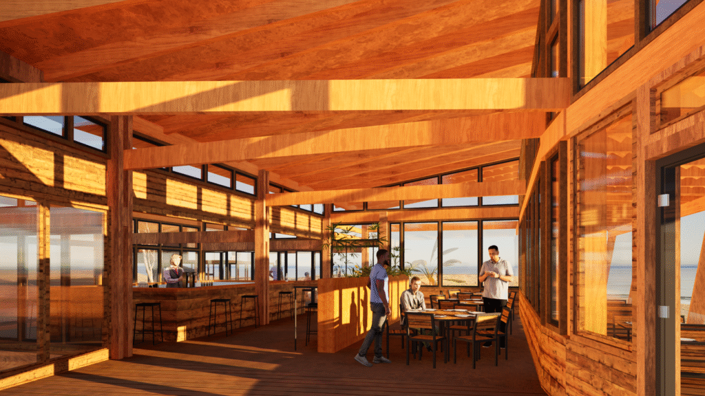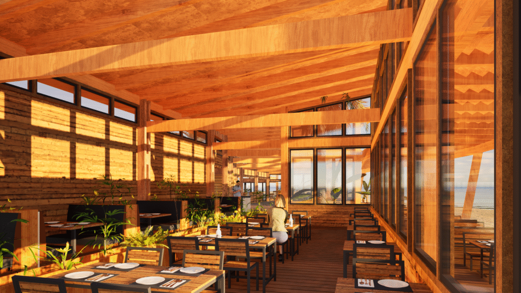 Este proyecto explora la modulación en madera para crear un espacio dinámico y funcional frente al mar. En el segundo cuatrimestre del primer año de arquitectura 1 realizamos el proyecto de un restaurante ubicado frente a las playas de Villa Gesell en Argentina. El reto principal fue entender cómo funciona la modulación en construcciones de madera y también hacer que los módulos se conformen un conjunto en el cual alberga las funcionalidades dentro.